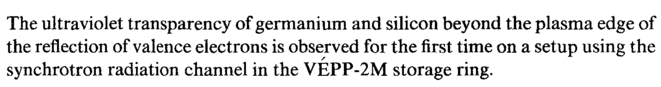 The ultraviolet transparency of germanium and silicon beyond the plasma edge of the reflection of valence electrons is observed for the first time on a setup using the synchrotron radiation channel in the VEPP-2M storage ring.