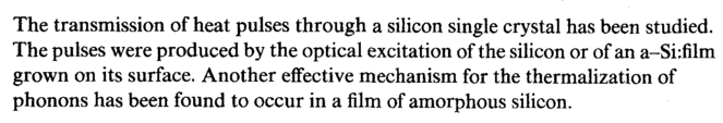 The transmission of heat pulses through a silicon single crystal has been studied. The pulses were produced by the optical excitation of the silicon or of an a~Si;fflm grown on its surface. Another effective mechanism for the thermalization of phonons has been found to occur in a film of amorphous silicon.