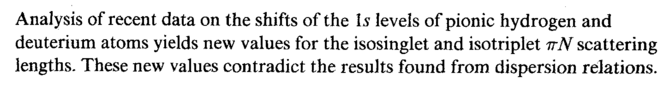 Analysis of recent data on the shifts of the Is levels of pionic hydrogen and deuterium atoms yields new values for the isosinglet and isotriplet πΝ scattering lengths. These new values contradict the results found from dispersion relations.
