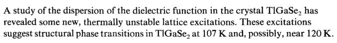 A study of the dispersion of the dielectric function in the crystal TlGaSe2 has revealed some new, thermally unstable lattice excitations. These excitations suggest structural phase transitions in TlGaSe2 at 107 К and, possibly, near 120 K.
