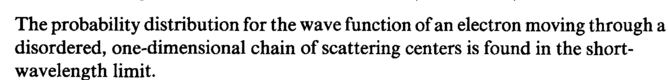 The probability distribution for the wave function of an electron moving through a disordered, one-dimensional chain of scattering centers is found in the short-wavelength limit.