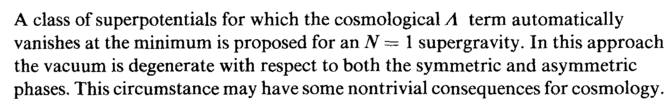 A class of superpotentials for which the cosmological Λ term automatically vanishes at the minimum is proposed for an N — 1 supergravity. In this approach the vacuum is degenerate with respect to both the symmetric and asymmetric phases. This circumstance may have some nontrivial consequences for cosmology.