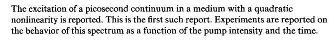 The excitation of a picosecond continuum in a medium with a quadratic nonlinearity is reported. This is the first such report. Experiments are reported on the behavior of this spectrum as a function of the pump intensity and the time.