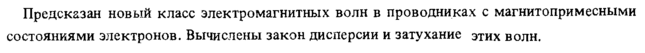 Предсказан новый класс электромагнитных волн в проводниках с магнитопримесными состояниями электронов. Вычислены закон дисперсии и затухание этих волн.