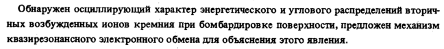 Обнаружен осциллирующий характер энергетического и углового распределений вторичных возбужденных ионов кремния при бомбардировке поверхности, предложен механизм квазирезонансного электронного обмена для объяснения этого явления.
