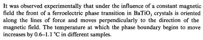 It was observed experimentally that under the influence of a constant magnetic field the front of a ferroelectric phase transition in BaTi03 crystals is oriented along the lines of force and moves perpendicularly to the direction of the magnetic field. The temperature at which the phase boundary begins to move increases by 0.6-1.1 °C in different samples.