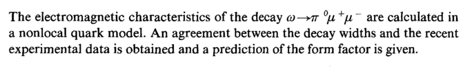 The electromagnetic characteristics of the decay ω —>π °μ +μ " are calculated in a nonlocal quark model. An agreement between the decay widths and the recent experimental data is obtained and a prediction of the form factor is given.