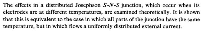 The effects in a distributed Josephson S-N-S junction, which occur when its electrodes are at different temperatures, are examined theoretically. It is shown that this is equivalent to the case in which all parts of the junction have the same temperature, but in which flows a uniformly distributed external current.
