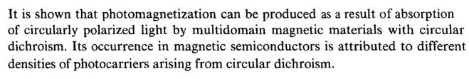 It is shown that photomagnetization can be produced as a result of absorption of circularly polarized light by multidomain magnetic materials with circular dichroism. Its occurrence in magnetic semiconductors is attributed to different densities of photocarriers arising from circular dichroism.