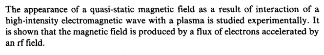 The appearance of a quasi-static magnetic field as a result of interaction of a high-intensity electromagnetic wave with a plasma is studied experimentally. It is shown that the magnetic field is produced by a flux of electrons accelerated by an rf field.