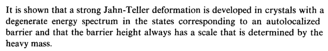 It is shown that a strong Jahn-Teller deformation is developed in crystals with a degenerate energy spectrum in the states corresponding to an autolocalized barrier and that the barrier height always has a scale that is determined by the heavy mass.