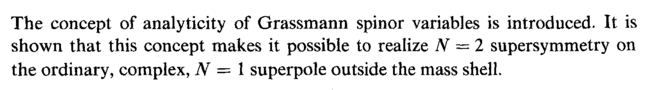 The concept of analyticity of Grassmann spinor variables is introduced. It is shown that this concept makes it possible to realize N ~2 supersymmetry on the ordinary, complex, N = 1 superpole outside the mass shell.