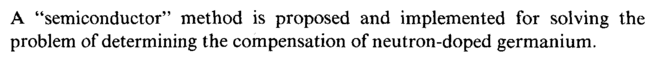 A "semiconductor" method is proposed and implemented for solving the problem of determining the compensation of neutron-doped germanium.
