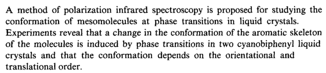 A method of polarization infrared spectroscopy is proposed for studying the conformation of mesomolecules at phase transitions in liquid crystals. Experiments reveal that a change in the conformation of the aromatic skeleton of the molecules is induced by phase transitions in two cyanobiphenyl liquid crystals and that the conformation depends on the orientational and translational order.