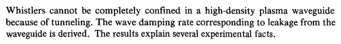 Whistlers cannot be completely confined in a high-density plasma waveguide because of tunneling. The wave damping rate corresponding to leakage from the waveguide is derived. The results explain several experimental facts.