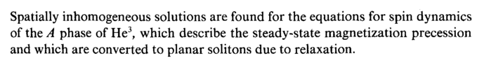Spatially inhomogeneous solutions are found for the equations for spin dynamics of the A phase of He3, which describe the steady-state magnetization precession and which are converted to planar solitons due to relaxation.