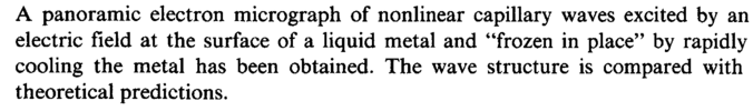A panoramic electron micrograph of nonlinear capillary waves excited by an electric field at the surface of a liquid metal and "frozen in place" by rapidly cooling the metal has been obtained. The wave structure is compared with theoretical predictions.