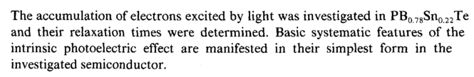 The accumulation of electrons excited by light was investigated in PB0 78Sn0 22Te and their relaxation times were determined. Basic systematic features of the intrinsic photoelectric effect are manifested in their simplest form in the investigated semiconductor.