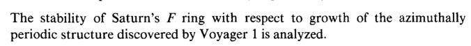 ring with respect to growth of the azimuthally periodic structure discovered by Voyager 1 is analyzed.
