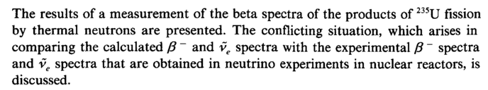The results of a measurement of the beta spectra of the products of 235U fission by thermal neutrons are presented. The conflicting situation, which arises in comparing the calculated β " and ve spectra with the experimental β ~ spectra and ve spectra that are obtained in neutrino experiments in nuclear reactors, is discussed.