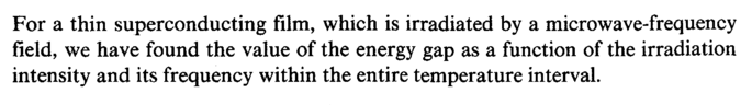 For a thin superconducting film, which is irradiated by a microwave-frequency field, we have found the value of the energy gap as a function of the irradiation intensity and its frequency within the entire temperature interval.