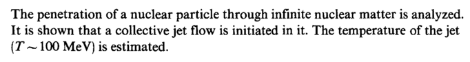 The penetration of a nuclear particle through infinite nuclear matter is analyzed. It is shown that a collective jet flow is initiated in it. The temperature of the jet (F~100 MeV) is estimated.