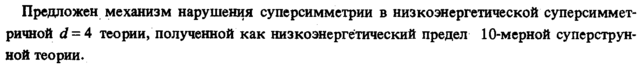 Предложен механизм нарушения суперсимметрии в низкоэнергетической суперсимметричной