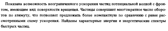 Показана возможность неограниченного ускорения частиц потенциальной волной с фронтом, имеющим вид поверхности вращения. Частицы совершают многократное число оборотов по азимуту, что позволяет предложить более компактную по сравнению с ранее рассмотренными схему ускорения. Найдены характерные энергии и энергетические спектры быстрых частиц.