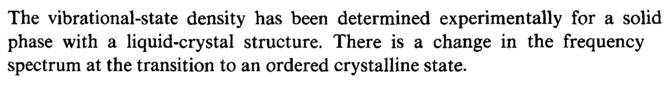 The vibrational-state density has been determined experimentally for a solid phase with a liquid-crystal structure. There is a change in the frequency spectrum at the transition to an ordered crystalline state.