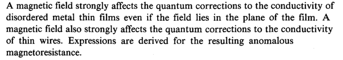 A magnetic field strongly affects the quantum corrections to the conductivity of disordered metal thin films even if the field lies in the plane of the film. A magnetic field also strongly affects the quantum corrections to the conductivity of thin wires. Expressions are derived for the resulting anomalous magnetoresistance.