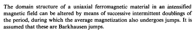 The domain structure of a uniaxial ferromagnetic material in an intensified magnetic field can be altered by means of successive intermittent doublings of the period, during which the average magnetization also undergoes jumps. It is assumed that these are Barkhausen jumps.