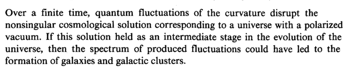 Over a finite time, quantum fluctuations of the curvature disrupt the nonsingular cosmological solution corresponding to a universe with a polarized vacuum. If this solution held as an intermediate stage in the evolution of the universe, then the spectrum of produced fluctuations could have led to the formation of galaxies and galactic clusters.