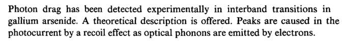 Photon drag has been detected experimentally in interband transitions in gallium arsenide. A theoretical description is offered. Peaks are caused in the photocurrent by a recoil effect as optical phonons are emitted by electrons.
