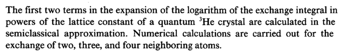 The first two terms in the expansion of the logarithm of the exchange integral in powers of the lattice constant of a quantum 3He crystal are calculated in the semiclassical approximation. Numerical calculations are carried out for the exchange of two, three, and four neighboring atoms.