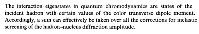 The interaction eigenstates in quantum chromodynamics are states of the incident hadron with certain values of the color transverse dipole moment. Accordingly, a sum can effectively be taken over all the corrections for inelastic screening of the hadron-nucleus diffraction amplitude.