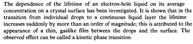The dependence of the lifetime of an electron-hole liquid on its average concentration on a crystal surface has been investigated. It is shown that in the transition from individual drops to a continuous liquid layer the lifetime increases suddenly by more than an order of magnitude; this is attributed to the appearance of a thin, gaslike film between the drops and the surface. The observed effect can be called a kinetic phase transition.