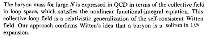 The baryon mass for large N is expressed in QCD in terms of the collective field in loop space, which satisfies the nonlinear functional-integral equation. This collective loop field is a relativistic generalization of the self-consistent Witten field. Our approach confirms Witten's idea that a baryon is a soliton in l/N expansion.