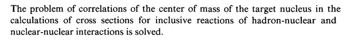 The problem of correlations of the center of mass of the target nucleus in the calculations of cross sections for inclusive reactions of hadron-nuclear and nuclear-nuclear interactions is solved.