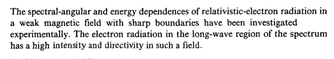 The spectral-angular and energy dependences of relativistic-electron radiation in a weak magnetic field with sharp boundaries have been investigated experimentally. The electron radiation in the long-wave region of the spectrum has a high intensity and directivity in such a field.