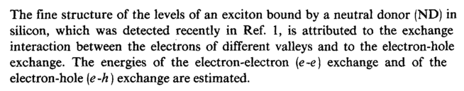 The fine structure of the levels of an exciton bound by a neutral donor (ND) in silicon, which was detected recently in Ref. 1, is attributed to the exchange interaction between the electrons of different valleys and to the electron-hole exchange. The energies of the electron-electron (e~e) exchange and of the electron-hole (e -h) exchange are estimated.