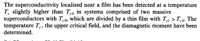 The superconductivity localized near a film has been detected at a temperature Tc slightly higher than TcQ in systems comprised of two massive superconductors with TcQi which are divided by a thin film with Tcl > Tc0. The temperature Tc, the upper critical field, and the diamagnetic moment have been determined.