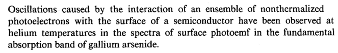 Oscillations caused by the interaction of an ensemble of nonthermalized photoelectrons with the surface of a semiconductor have been observed at helium temperatures in the spectra of surface photoemf in the fundamental absorption band of gallium arsenide.