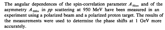 The angular dependences of the spin-correlation parameter A 00„„ and of the asymmetry A000„ in pp scattering at 950 MeV have been measured in an experiment using a polarized beam and a polarized proton target. The results of the measurements were used to determine the phase shifts at l GeV more accurately.