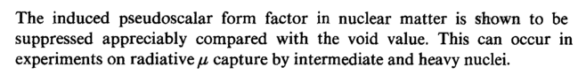 The induced pseudoscalar form factor in nuclear matter is shown to be suppressed appreciably compared with the void value. This can occur in experiments on radiative μ capture by intermediate and heavy nuclei.