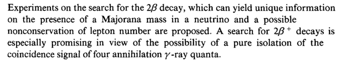 Experiments on the search for the 2β decay, which can yield unique information on the presence of a Majorana mass in a neutrino and a possible nonconservation of lepton number are proposed. A search for 2β + decays is especially promising in view of the possibility of a pure isolation of the coincidence signal of four annihilation /-ray quanta.