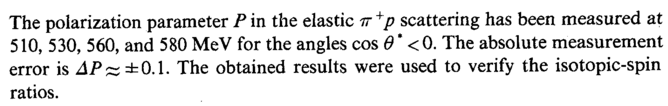The polarization parameter Ρ in the elastic ττ +p scattering has been measured at 510, 530, 560, and 580 MeV for the angles cos Θ* <0. The absolute measurement error is APs5±0.1. The obtained results were used to verify the isotopic-spin ratios.