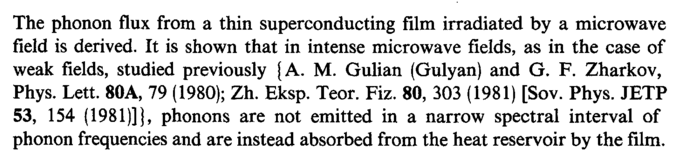 The phonon flux from a thin superconducting film irradiated by a microwave field is derived. It is shown that in intense microwave fields, as in the case of weak fields, studied previously [A. M. Gulian (Gulyan) and G. F. Zharkov, Phys. Lett. 80A, 79 (1980); Zh. Eksp. Teor. Fiz. 80, 303 (1981) [Sov. Phys. JETP 53, 154 (1981)]}, phonons are not emitted in a narrow spectral interval of phonon frequencies and are instead absorbed from the heat reservoir by the film.