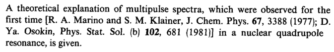 A theoretical explanation of multipulse spectra, which were observed for the first time [R. A. Marino and S. M. Klainer, J. Chem. Phys. 67, 3388 (1977); D. Ya. Osokin, Phys. Stat. Sol. (b) 102, 681 (1981)] in a nuclear quadrupole resonance, is given.