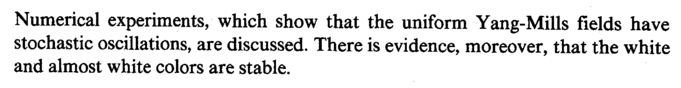 Numerical experiments, which show that the uniform Yang-Mills fields have stochastic oscillations, are discussed. There is evidence, moreover, that the white and almost white colors are stable.