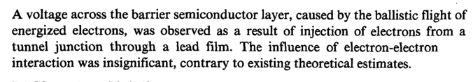 A voltage across the barrier semiconductor layer, caused by the ballistic flight of energized electrons, was observed as a result of injection of electrons from a tunnel junction through a lead film. The influence of electron-electron interaction was insignificant, contrary to existing theoretical estimates.